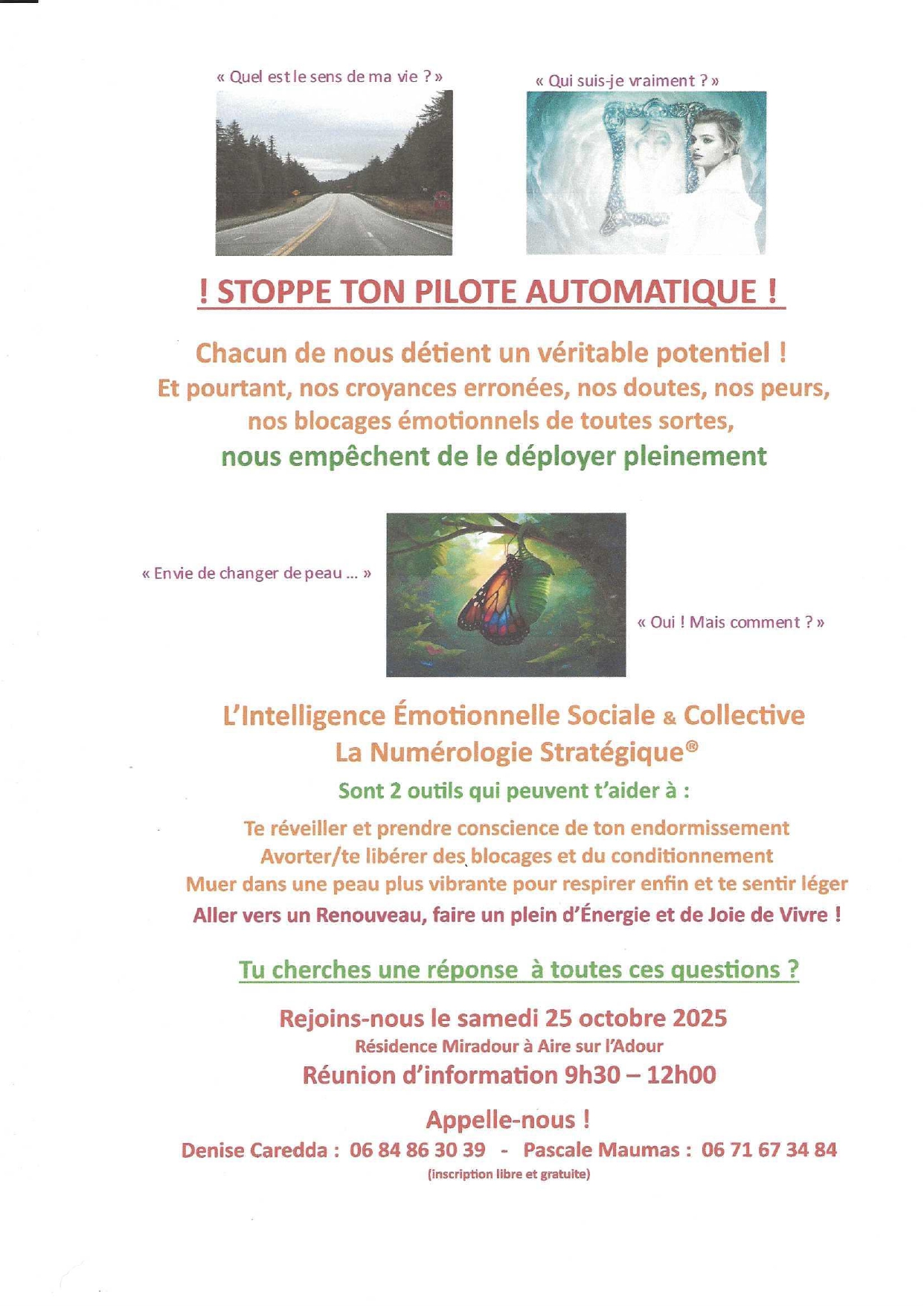 samedi 25 octobre 2025 9 h 30 jusqu'aux environs de 12 h 00 au cabinet de Denise CAREDDA